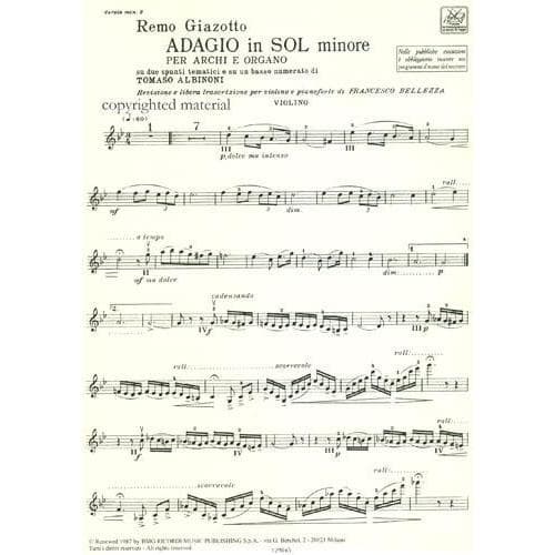 Albinoni, Tomoso - Adagio in g minor for Violin and Piano - Arranged by R Giazotto - Schirmer Edition