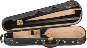 The strong wood shell protects your instrument while the elegant gold tone hardware nicely complements the claret red cotton or onyx black velvet interiors with camel accent. Includes plenty of room for your shoulder rest. For 4/4 violin only.