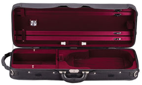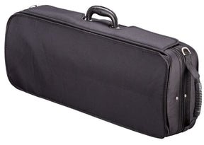 From the strong, multi-layered plywood shell to the large rubber grip on the subway strap, to the American Case logo that commands the respect of experienced players, the Eagle viola case is designed for the professional violist. Black Oxford cover with music pocket, heavy duty hardware, YKK zippers, jumbo vapor bottle and mechanical hygrometer assure the safety of your viola. Includes viola bag and blanket and a pair of shoulder straps, for backpacking. Easily adjusts to custom fit your viola: Remove cloth screw cover, loosen thumbscrew, slide upper bout/neck holder assembly, and re-tighten. Two large accessory compartments and large, soft handle attend to your needs! Choice of two solid velvet interior colors: Medium Blue and Deep Red. Fits violas from 15 1/2" to 17"; Tertis patterns up to 16 1/2".