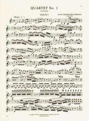 Arriaga, Juan Crisóstomo - Three Quartets - Parts for Two Violins, Viola and Cello - International Edition
