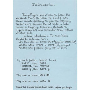 Racing Fingers was written to follow the workbook Fun With Notes. The first half of the book is a collection of 2 and 3-note figures that are to be played without writing in the finger number or note letter. They are to be repeated with different speeds and bowings, making them an exercise in repetition, speed, and accuracy. There are seven short pieces at the end of the book that highlight these small fragments, and act like a series of left-hand dexterity etudes for beginners. Evelyn AvSharian’s classic oversized notation makes reading easy, especially for young students. 20 pages.