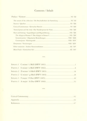 Bach's Sonatas and Partitas for Solo Violin have been regarded as a pinnacle of the violin repertory virtually ever since they were composed. The aim of this edition is to encourage viola players to become more familiar with these great works, and at the same time help them interpret Bach's ambiguous performance markings as a string player of the period might have done.
