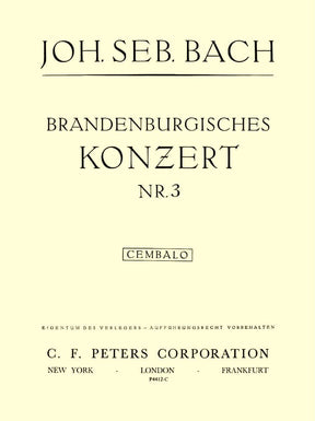 Bach, JS - Brandenburg Concerto No 3 BWV 1048 for Piano - Peters Edition