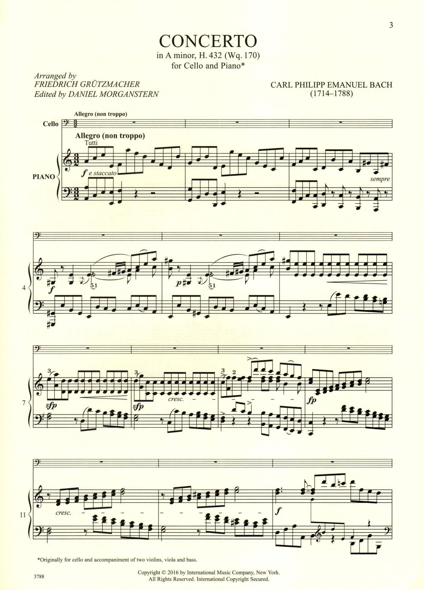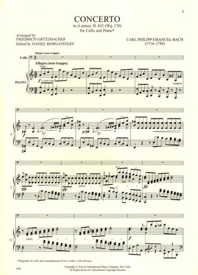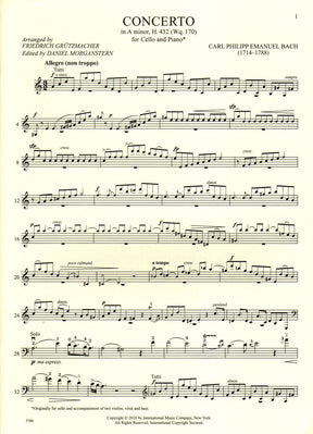 Bach, C.P.E. - Concerto in A minor, H. 432 (Wq. 170) - Cello and Piano - edited by Grutzmacher/Morganstern - International Edition