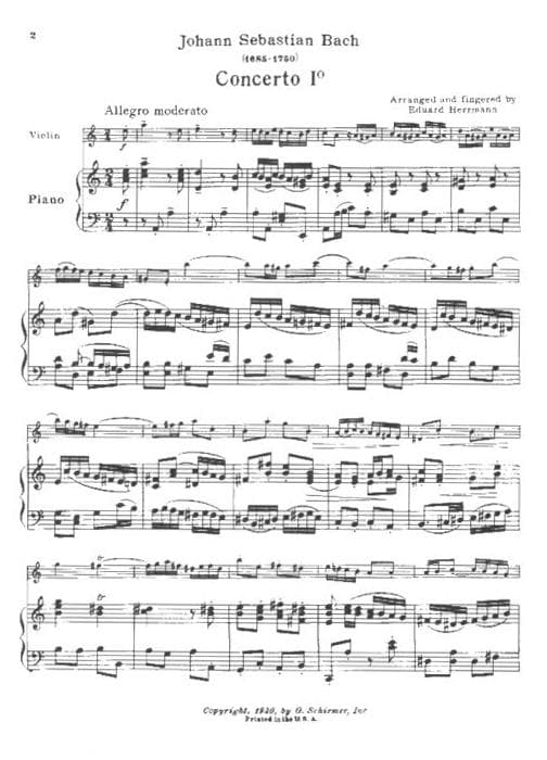 Bach, JS - Violin Concerto No 1 in A Minor, BWV 1041 - Violin and Piano - edited by Herrmann - Schirmer