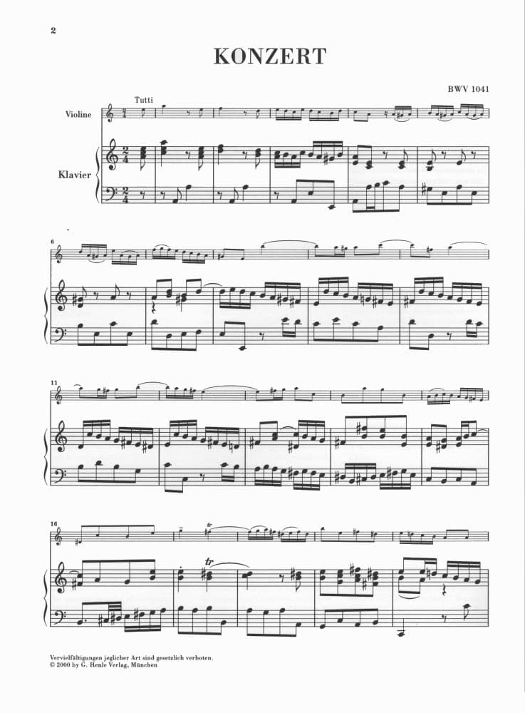 Bach, JS - Violin Concerto in A Minor, BWV 1041 - for Violin and Piano - G Henle Verlag URTEXT Edition