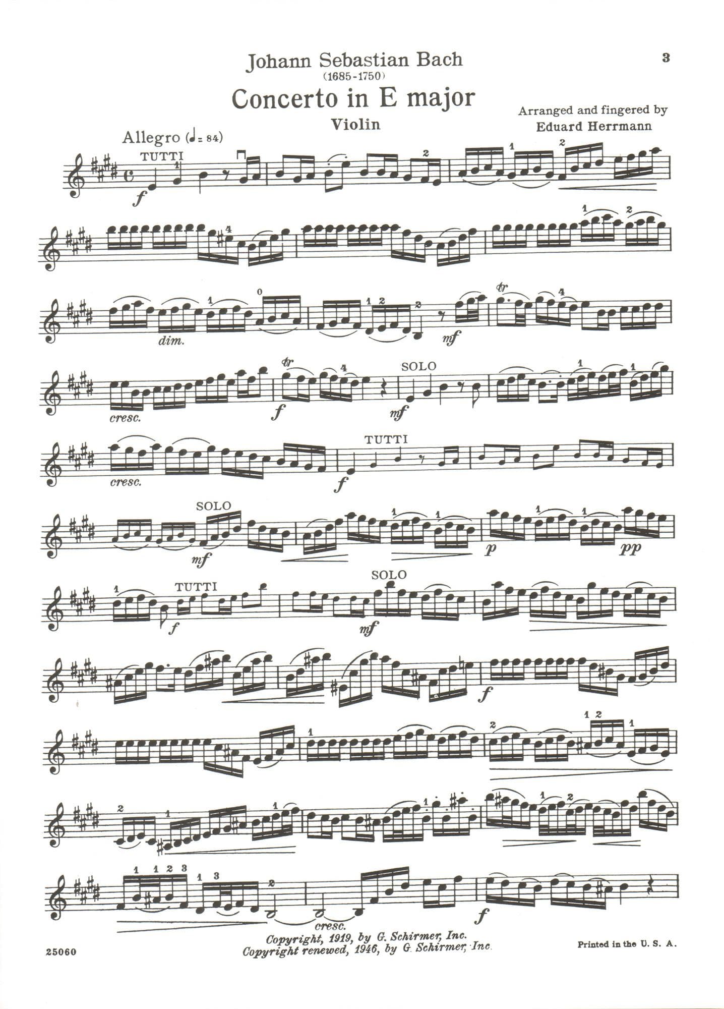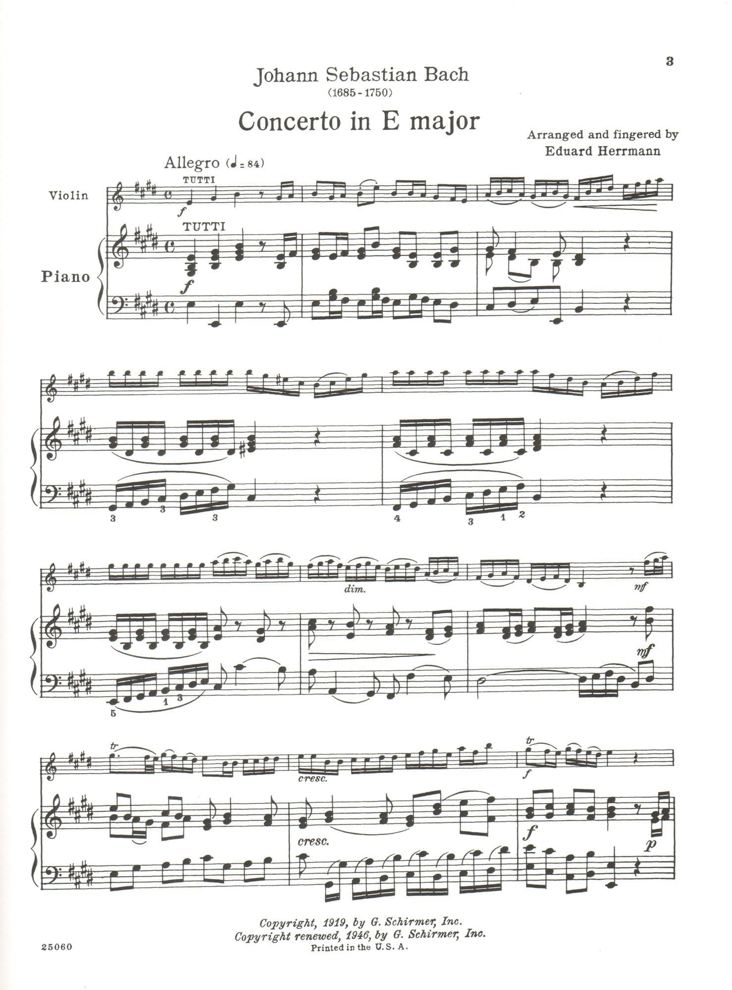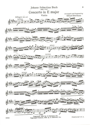 Bach, JS - Violin Concerto No 2 in E Major, BWV 1042 - Violin and Piano - edited by Herrmann - Schirmer