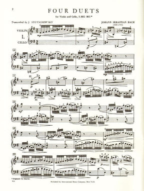 Bach, JS - 4 Duets BWV 802 805 for Violin and Cello - Arranged by Stutschewsky - International Edition