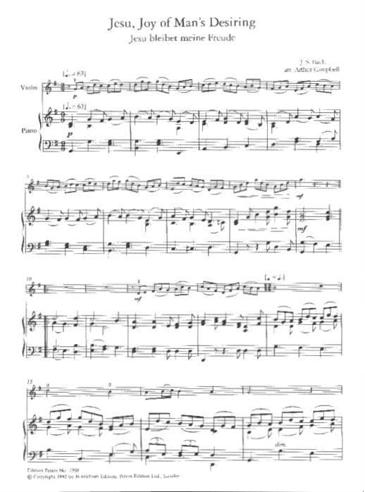 Bach, JS - Jesu: Joy of Man's Desiring BWV 147 - Violin and Piano - arranged by Arthur Campbell - Peters Edition