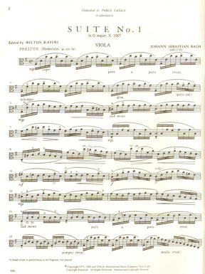 Bach, JS - 6 Cello Suites, BWV 1007-1012 - Viola solo - arranged by Milton Katims - International Music Company