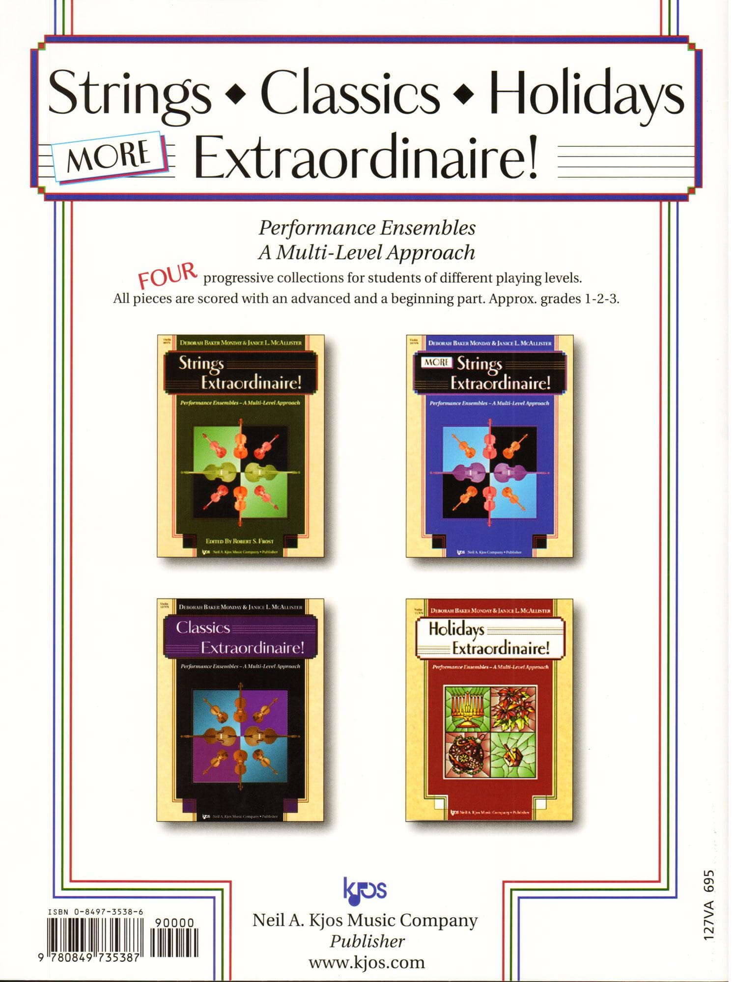 Deborah Baker Monday and Janice L. McAllister have accomplished something that only teachers could accomplish – they have created a series of pieces that young musicians love to play in concerts, festivals and recitals! With their years of teaching experience in the Logan City (Utah) School District, they first collaborated on the now-popular Strings Extraordinaire series, later adding Holidays Extraordinaire, MORE Strings Extraordinaire and their latest, Classics Extraordinaire, for a wide variety of levels. With scores, individual string instrument parts, and optional piano accompaniments, all bound within sturdy covers, everything you need for your studio or program is just a click away! An enriching and engaging musical experience for everyone, from middle school ensembles to New Horizons senior ensembles and youth orchestras.