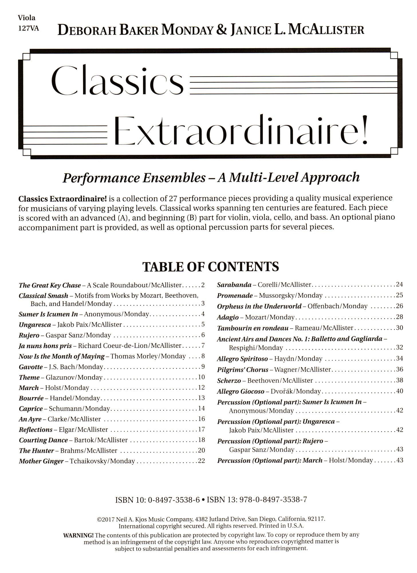Classics Extraordinaire! - by Deborah Baker Monday & Janice L. McAllister - for Viola - Neil A Kjos Music Company