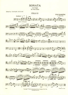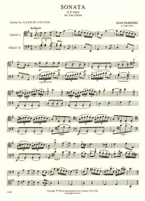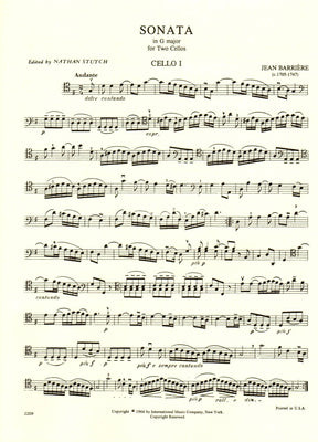 Barriere, J - Sonata In G Major for Two Cellos - Arranged by Stutch - International Edition