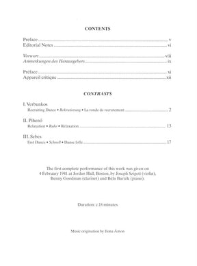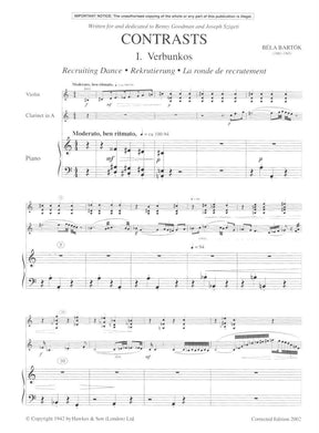 Bartok, Bela - Contrasts Sz 116 for Violin, Clarient and Piano (Corrected Edition 2002) - Edited by Dellamaggiore and Bartok - Boosey & Hawkes Edition