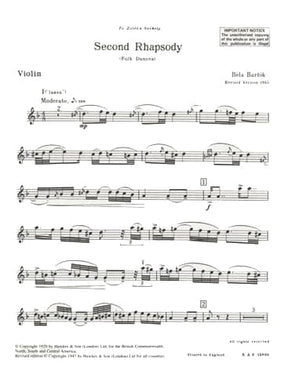 Bartók, Béla - Second Rhapsody, Sz 96a ("Folk Dances") - Violin and Piano - Boosey & Hawkes Edition