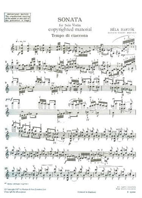 Bela Bartok - Sonata for Solo Violin, Sz 117 - Violin - edited by Yehudi Menuhin - Boosey and Hawkes