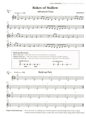 Following some historical background, each tune is presented in a basic, simplified version intended for the beginning player. Where appropriate, words are provided so students can sing along. A more advanced version of the tune appears next, with some musical variations that are designed to challenge and motivate students. A back-up part is then provided where students can improvise simple accompanying harmonies and rhythms using the printed parts as a departure point. All parts can be played together in any combination. The last page of the book provides students with additional simple-but-effective ideas for fiddling improvisation.