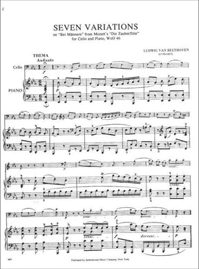Beethoven, Ludwig - 7 Variations on a Theme Bei Mannern from Mozart's Magic Flute WoO 46 for Cello and Piano - International Edition