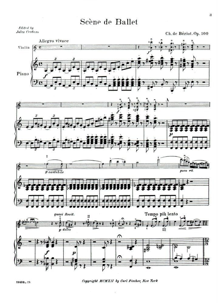 Beriot, Charles De - Scene De Ballet Op 100 for Violin and Piano - Arranged by Centano - Fischer Edition
