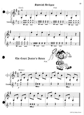 Book 3F, The Kingdom of Stringdom: The primary purpose of this book is to teach the alphabet names of the notes and to promote fluent sight reading (not just of the notes, but of accurate rhythm, and an awareness of dynamics, articulation markings, etc.). The object of the Kingdom of Stardom game is to reach King String's castle. To do this, the student must complete his travel through each of the 4 "Stringdoms" of G, D, A & E on the Map by following the Clue Messages he receives from his teacher. Princess Treble Clef acts as the guide to the young violinist. At the end the student receives a Proclamation by King String, as well as a Certificate of Promotion to the Green Books (4th Year).