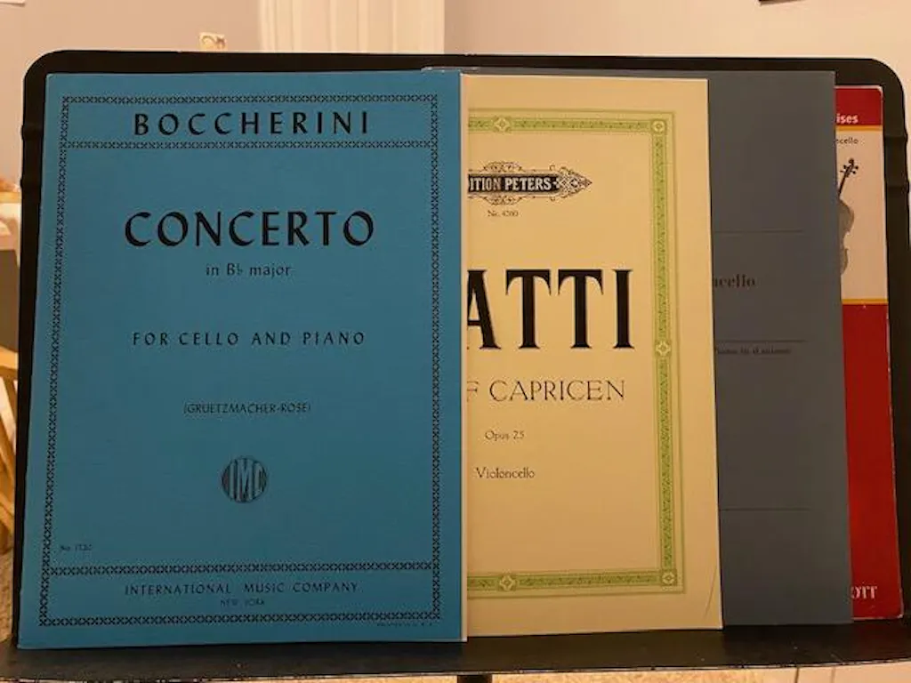 Originally composed around 1770, Boccherini's Cello Concerto Number 9 was extensively rearranged in 1895 by Grutzmacher in the style of a Romantic concerto. Although this concerto is considered Advanced, it is often used to introduce students to difficult solo repertoire. It does make full use of the cello's entire range, but it does so without large jumps between positions.