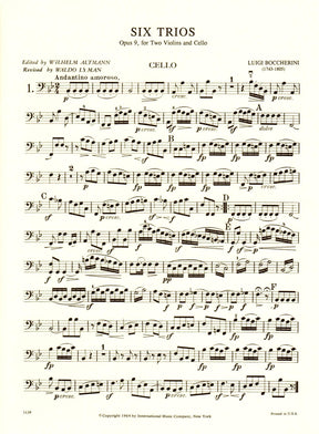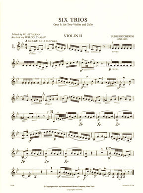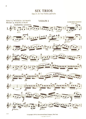 Boccherini, Luigi - 6 Trios Op 9 G 89-94 for Two Violins and Cello - Arranged by Altmann-Lyman - International Edition