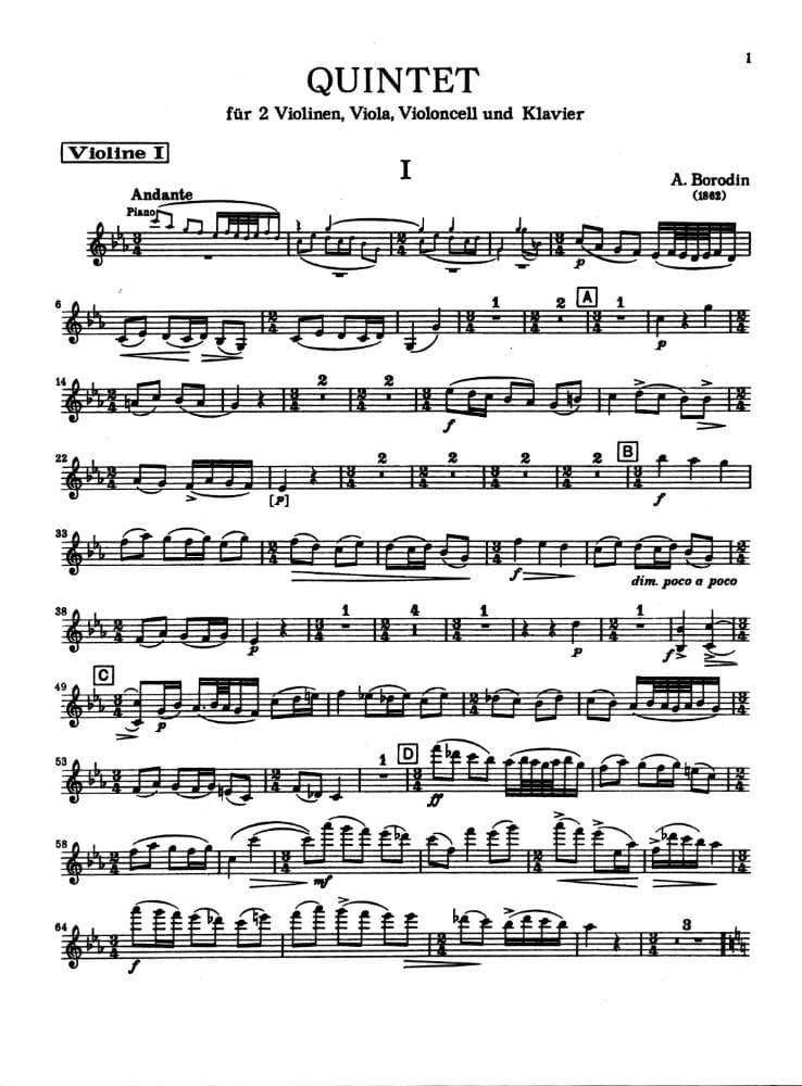 Borodin, Alexander - Piano Quintet in c minor (1862) for Two Violins, Viola, Cello and Piano - Kalmus Publication