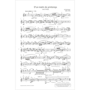 In this Edition Schott, four gems of Boulanger's small output are individual works, though they can be performed together as suites of two, three or four movements where required. D'un matin de printemps (1917) is one of Boulanger's more popular works, a spry scherzo that she later rearranged for piano trio and for orchestra. The second piece, Nocturne (1911), is simply beautiful, full of interesting chromatic harmonies and even a nod to Debussy's Prélude à l'après-midi d'un faune. Introduction – Cortège (1914) follows as a set of character pieces, the slow introduction juxtaposes the swift Cortège. The final title in the volume, Pièce (1910), had only survived until now as a manuscript and is one of Boulanger's earlier known works. Even so, this early work demonstrates her ingenuity as a composer and a "...willingness to experiment with harmonies that might be associated with the Wagnérisme that was then fashionable in France..." (Preface).