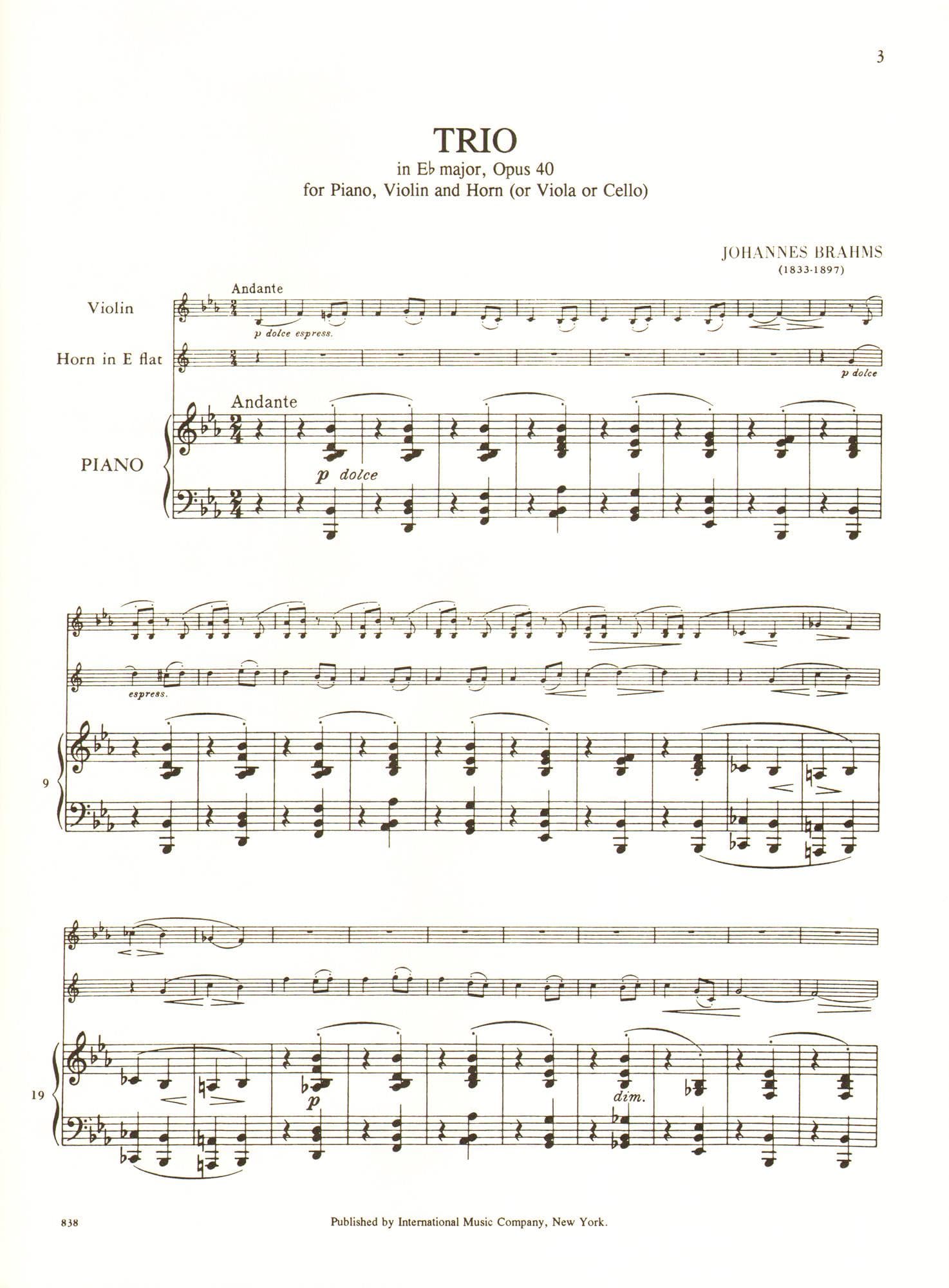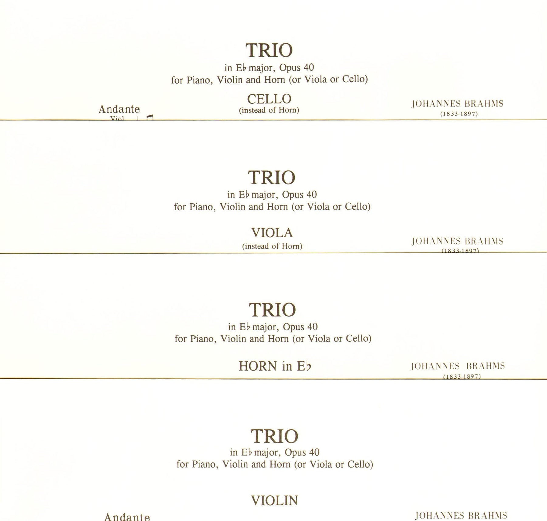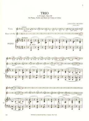 Brahms, Johannes - Trio in E-flat Major Op 40 for Violin, Viola/Cello and Piano - International Edition