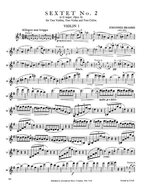 Brahms, Johannes - Sextet No 2 in G Major, Op 36 - Two Violins, Two Violas and Two Cellos - Set of Parts - International Music Company