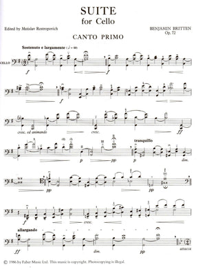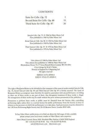 Britten, Benjamin - 3 Suites For Cello Op 72 , 80 , and 87 for Cello - Edited by Rostropovich - Faber Music Publication