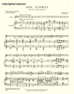 Bruch, Max - Kol Nidre, Op 47 - for Violin and Piano - edited by Josef Gingold - International Music Co