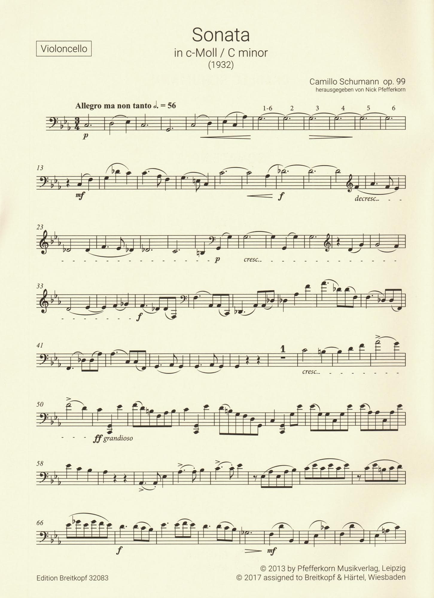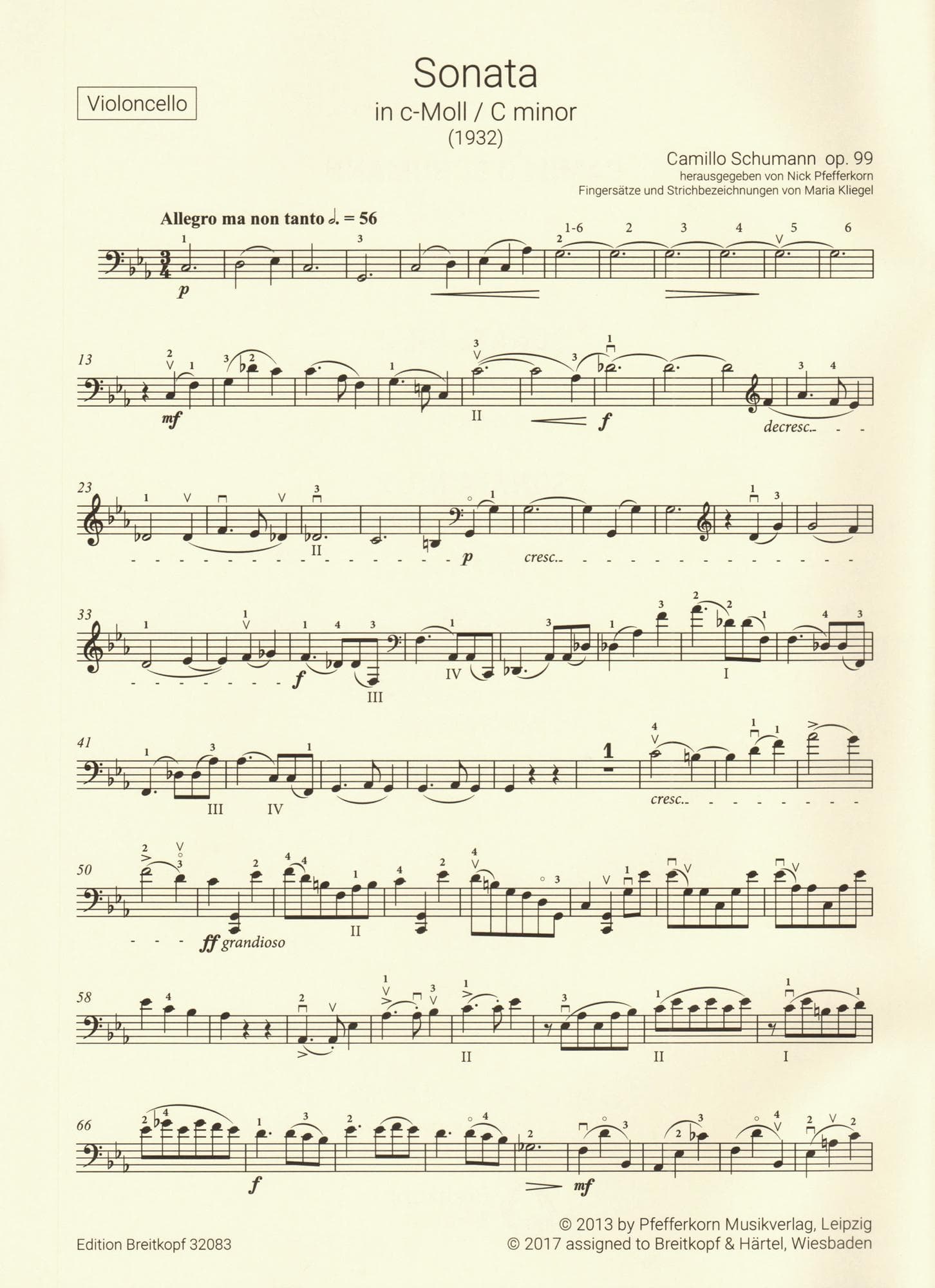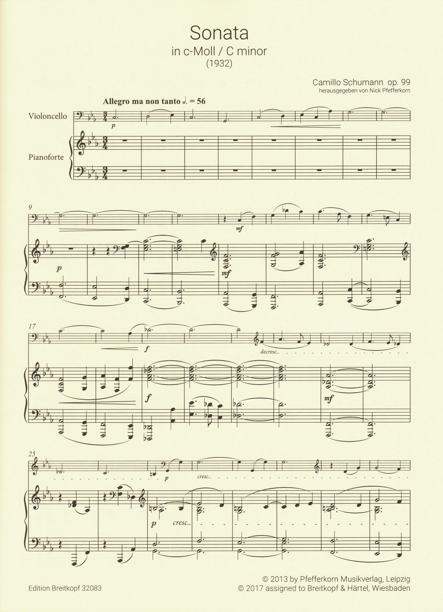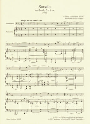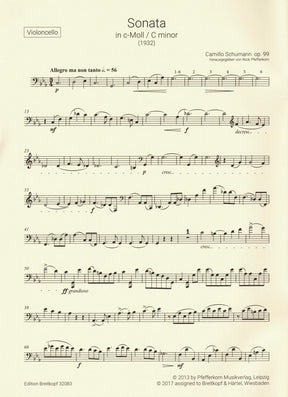 Schumann, Camillo - Sonata No. 2 in C minor, Op. 99 - for Cello and Piano - Breitkopf & Hartel URTEXT