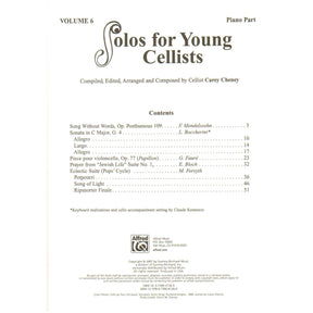 Solos for Young Cellists: Volume 6 - for Cello and Piano - by Carey Cheney