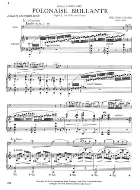 Polonaise Brillante, op 3 - Chopin, Frederic - Cello and Piano - edited by Rose - International Music Company