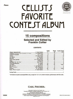 Cellist's Favorite Contest Album - Book and MP3 Audio - Edited by Collier - Fischer Edition