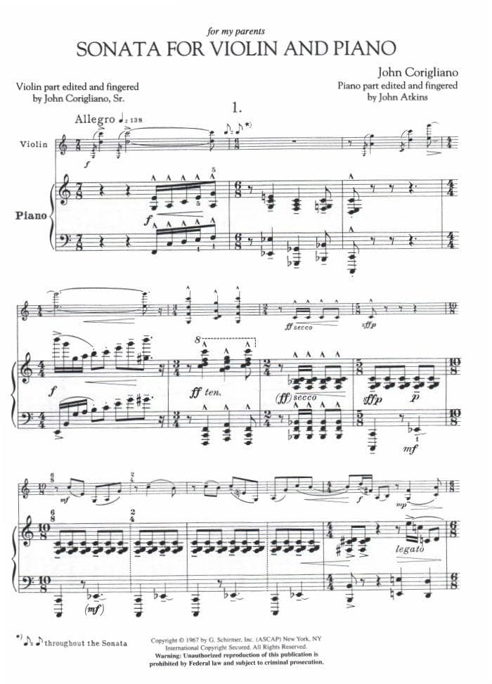 Corigliano, John - Sonata for Violin and Piano - edited by John Corigliano, Sr - G Schirmer Edition