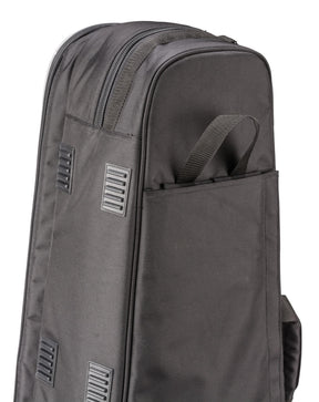 We have redesigned our entire CUSHY case carrier lineup for fall 2015! With all new features, clever storage, and significantly upgraded materials, our new CUSHYs are more comfortable and protective than ever. All models have super strong yet soft and ergonomic backpack straps that can be concealed easily behind a flap when not in use. Made from strong Duracover® water repellant nylon with ½” of padding, the Cushy assures that whatever case it covers is protected from shock, temperature, and rain. Heavy gauge metal D-rings are double reinforced, if you wish to carry your CUSHY across your shoulder; comfortable shoulder strap is included. Huge storage capacity, with full-sizedzippered pocket for music folders, smaller pocket for flat accessories and equipment. Reflective piping helps drivers see you at night. Tough skid pads on two sides.