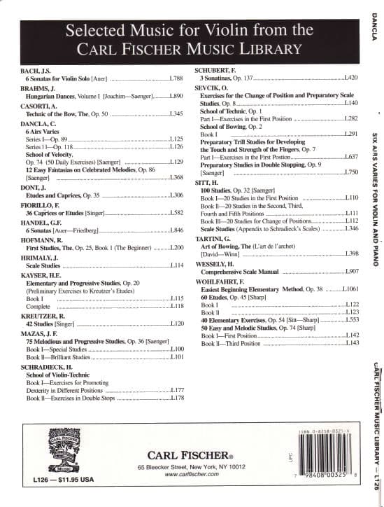 Dancla, Charles - 6 Airs Variés, Op 118 - Violin and Piano - Carl Fischer Edition