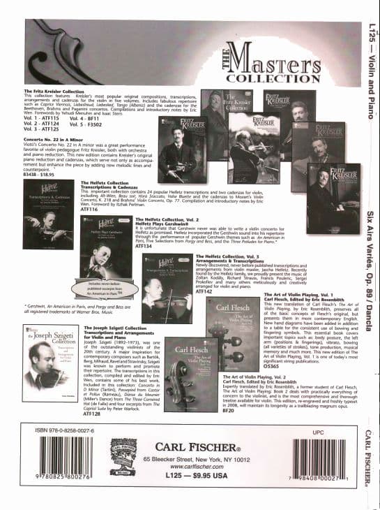 Contains a violin part and a piano part. Six pieces. Published by Carl Fischer.