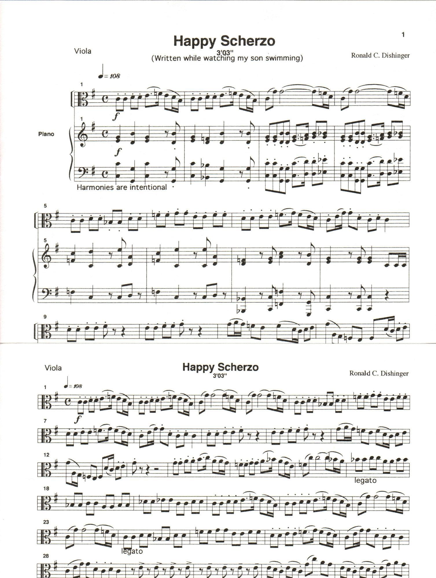 Dishinger, Ronald - Happy Scherzo - for Viola and Piano - Medici Music Press
