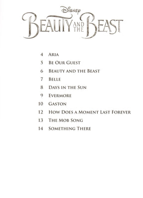 This sheet music book is a collection of 10 popular songs and soundtrack themes from the live-action motion picture of Disney's Beauty and the Beast (2017). These authentic but easy-to-play arrangements include: