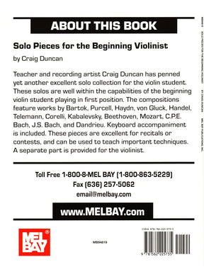 Solo Pieces for the Beginning Violinist - for Violin and Piano - arranged by Craig Duncan - Mel Bay Publications