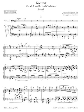 Dvorak, Antonin - Cello Concerto in B Minor, Op 104 - Cello and Piano - edited by Doge and Schiff - Breitkopf Edition
