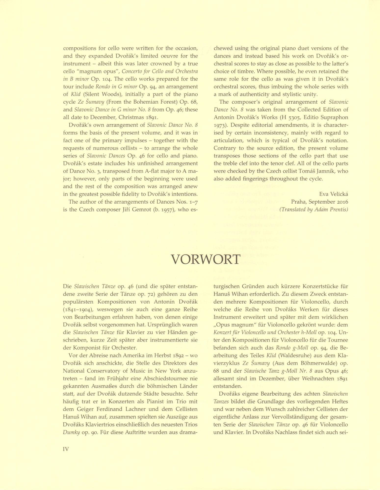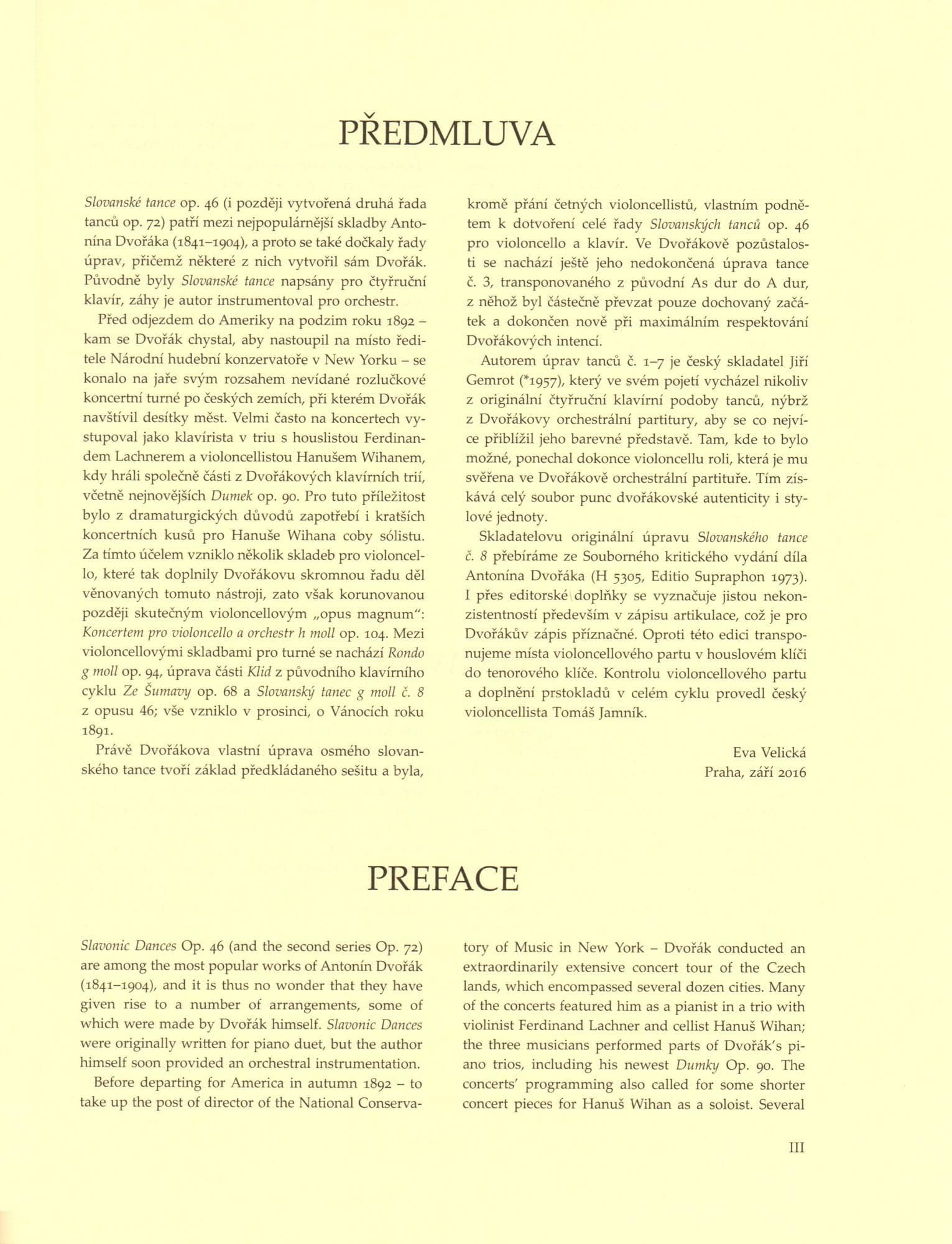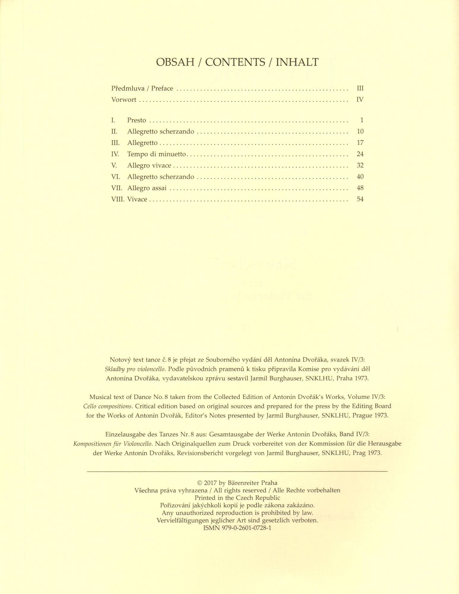 This edition includes the piano accompaniment and solo part arranged for cello of Dvorak's Slavonic Dances, which were originally written for piano duet, and later arranged by Dvorak for Orchestra. It also includes a historical Preface by Eva Velicka. All eight dances are included.