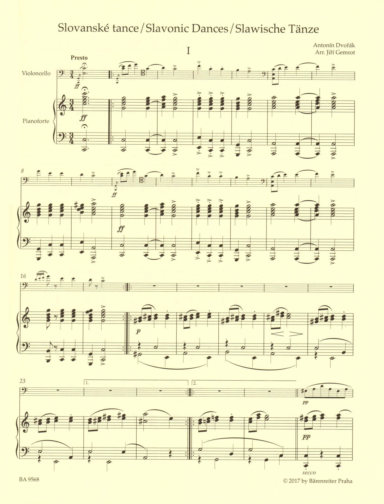 Dvorak, Antonin - Slavonic Dances, Op. 46 - arranged by J. Gemrot - for Cello and Piano - Barenreiter