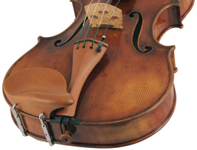 Boxwood violin chinrest with a high, side-mounted plate and a comfortable rounded edge hanging over the tailpiece.