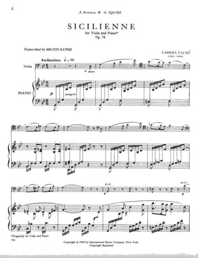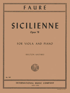 Fauré, Gabriel - Siciliene, Op 78 - Viola and Piano - edited by Milton Katims - International Edition