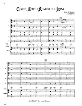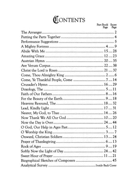 Robert Frost's "Sacred Settings" is an invaluable collection for any gigging musician. Containing 24 popular religious melodies from Mozart's Ave Verum Corpus to Amazing Grace, this collection is useful in a variety of situations. These books contain three parts for each instrument (melody, harmony, and accompaniment), allowing for a lot of flexibility in ensemble structure.