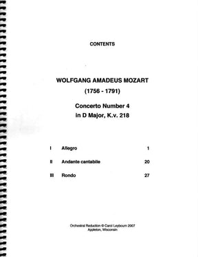 Mozart, WA - Violin Concerto No 4 in D Major, K 218 - PIANO ACCOMPANIMENT ONLY - arranged by Carol Leybourn - Frustrated Accompanist Edition